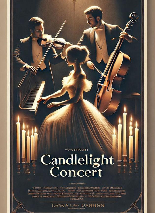 Запрошуємо вас на чарівний Candlelight Concert, де м'яке світло свічок створить неповторну атмосферу музичної магії. Цього вечора скрипка, віолончель та фортепіано візьмуть вас у музичну подорож від класики до сучасних шедеврів.